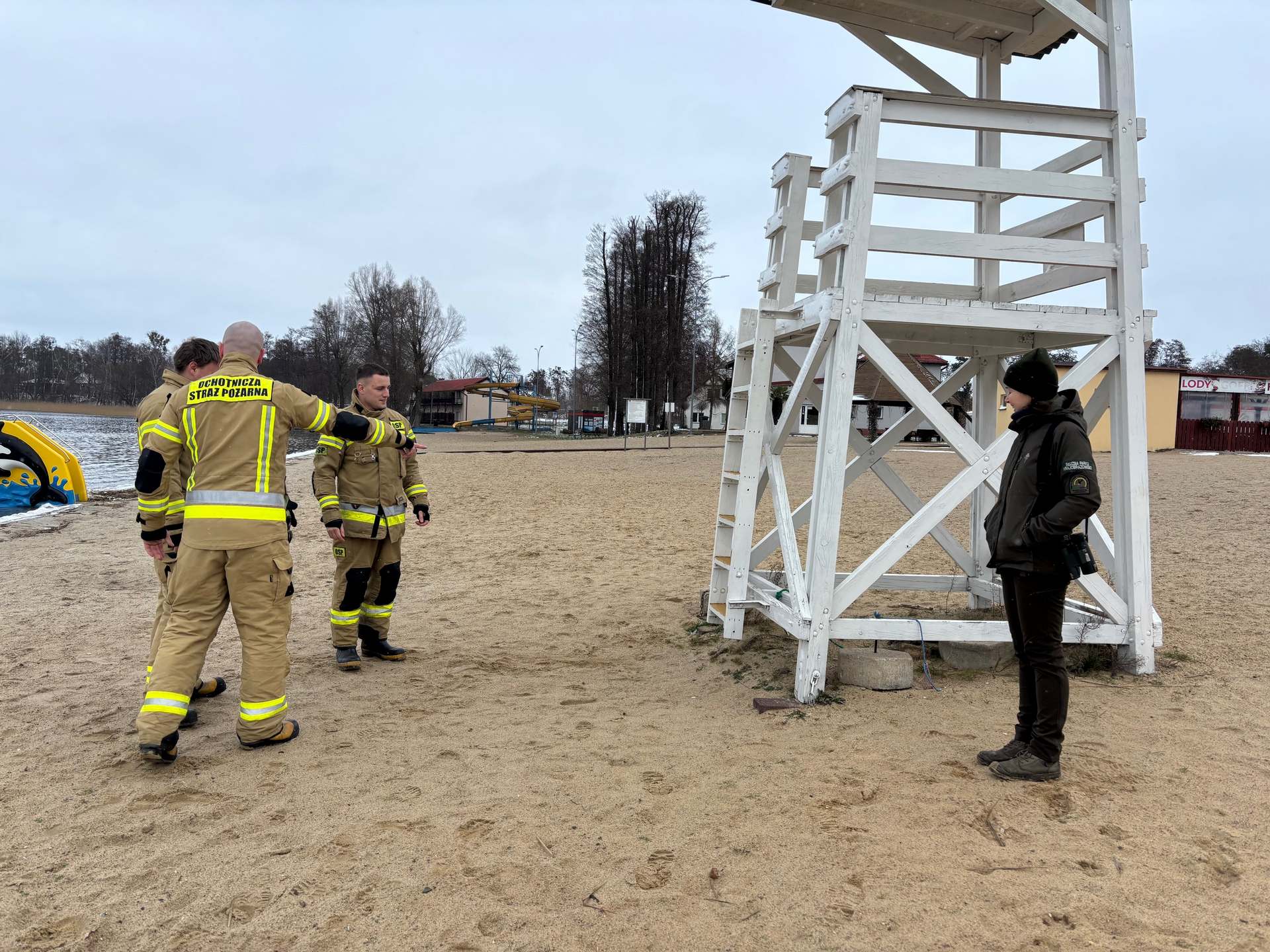 Mając to na uwadze, a chcąc zapobiegać groźnym dla zdrowia i życia zdarzeniom, strażacy z OSP Pszczew, posterunek policji w Pszczewie oraz pracownicy Pszczewskiego Parku Krajobrazowego przypominają, o obowiązkowym zachowaniu ostrożności. Zimowe korzystanie z obszarów wodnych wiąże się z wieloma zagrożeniami, jednak przestrzeganie podstawowych zasad bezpieczeństwa i posiadanie odpowiedniej wiedzy o warunkach na lodzie, może znacznie zmniejszyć ryzyko wypadków i zapewnić bezpieczną rekreację w tym okresie. Robocze, terenowe spotkanie dotyczące współpracy trzech służb odbyło się nad j. Szarcz w Pszczewskim Parku Krajobrazowym, które już przy pierwszych mrozach będzie miejscem odwiedzin wędkarzy, łyżwiarzy i stałych gości, czyli „morsów”.