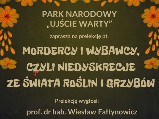 - 01.2025 r. prof. Wiesław Fałtynowicz opowie o „Mordercach i wybawcach, czyli niedyskrecjach ze świata roślin i grzybów”. Już sam tytuł spotkania wzbudza zainteresowanie a znając ogromną wiedzę i talent do opowiadania profesora –jego opowieść na pewno będzie fascynująca!