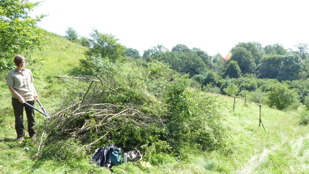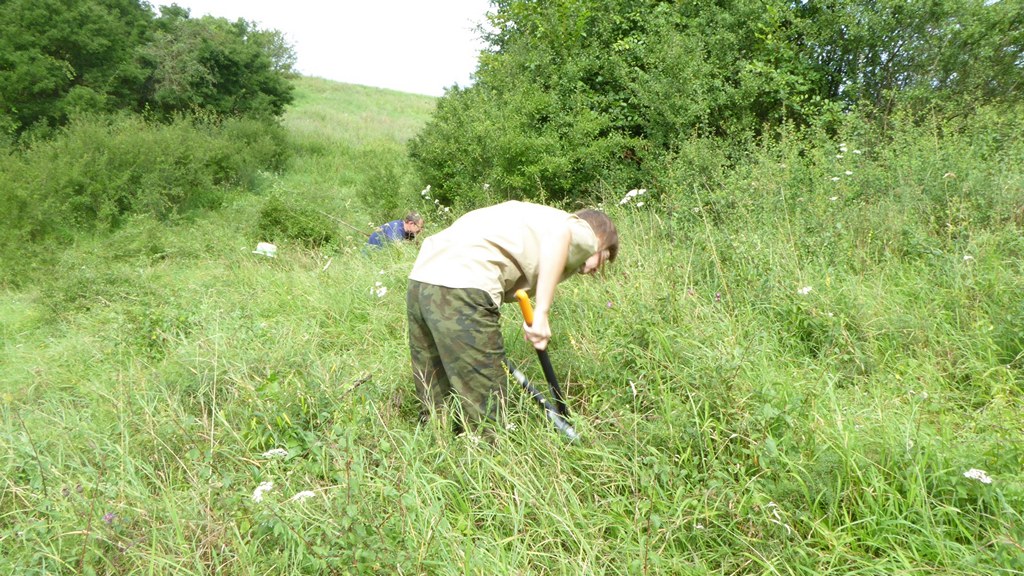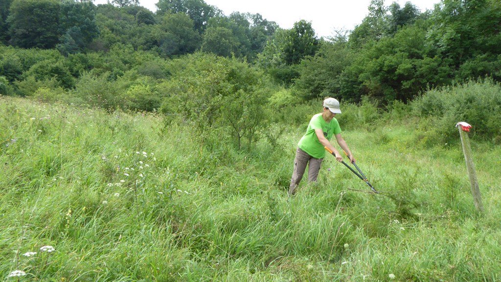 Służba Parków Krajobrazowych wspólnie z pracownikami Muzeum Łąki w Owczarach, przystąpiła w kolejnym sezonie do zadania z zakresu czynnej ochrony muraw kserotermicznych. W dniu 09.08.2017 r. na obszarze chronionym w Owczarach, grupa 5 osób usuwała zakrzewienia z powierzchni murawy kserotermicznej, na której prowadzony jest ekstensywny wypas owiec rasy wrzosówka.