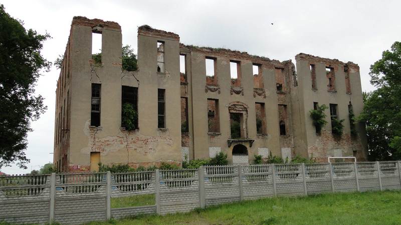 Kierując się na zachód dojeżdżamy do Dąbroszyna, kolejnej miejscowości z bogatą historią. Dawny, owalny układ tej starej słowiańskiej osady jest wciąż wyraźnie czytelny. Uwagę przykuwa podupadający obecnie pałac, który czasy swej świetności ma już niestety za sobą: zbudowany w 2. połowie XVII w. był rezydencją rodu Schöningów. W jego otoczeniu założono park: Park Dolny jest bogaty w różnorodne okazy rodzimych i egzotycznych drzew, by wymienić choćby miłorząb dwuklapowy; Park Górny nawiązuje do angielskiego romantyzmu – zbudowano tam dwie świątynie i pomnik upamiętniający setną rocznicę intronizacji Fryderyka Wielkiego.
