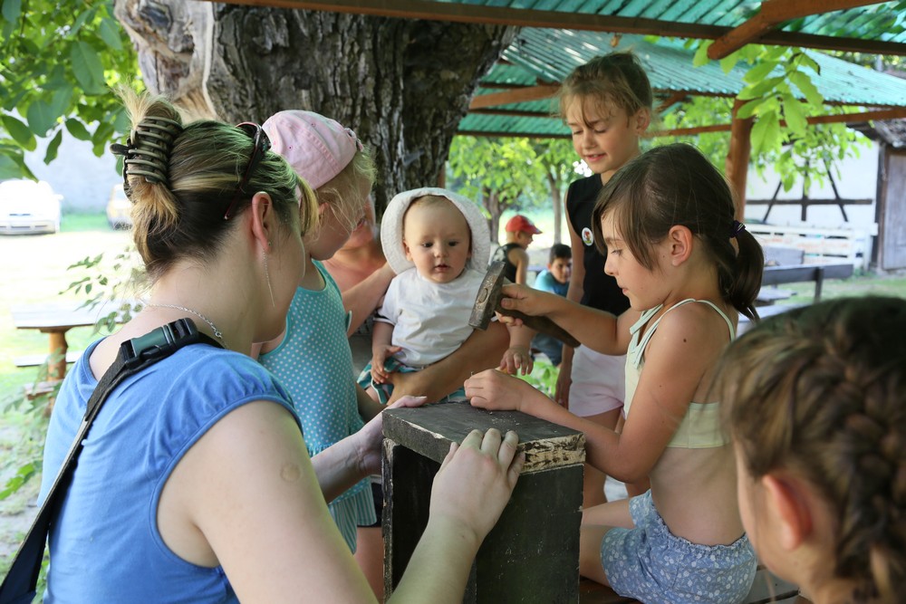 Zbijanie domków dla pszczoł fot. K. GajdaChcąc uwrażliwić dzieci, młodzież oraz dorosłych na problemy pszczół na terenie Krzesińskiego Parku Krajobrazowego 8 sierpnia 2015 roku w miejscowości Kłopot odbyło się zajęcia edukacyjne pod hasłem „Wielki Dzień Pszczół”. Spotkanie zaczęło się od prezentacji przeprowadzonej przez pracownika Parku. Następnie dzięki uprzejmości Pana Piotra Nowaka - pszczelarza z Kłopotu dzieci miały możliwość zerknąć do ula oraz dowiedzieć się wielu ciekawostek odnośnie pracy z pszczołami. A dla dzieci największą radość sprawiło zbijanie domków dla dziko żyjących owadów.