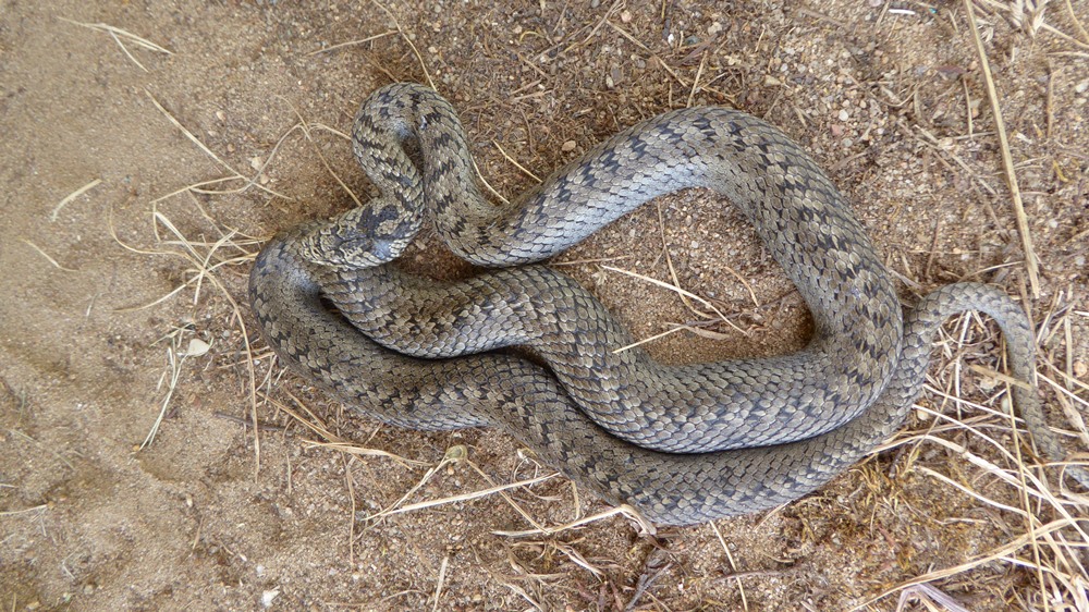 Do grona wymienionych gatunków należy dopisać ostatniego z nich – gniewosza plamistego (Coronella austriaca) (Fot.3) zasługującego na szczególną uwagę z kilku względów. Wąż ten jest rzadkim bywalcem półotwartych i nasłonecznionych terenów, niejadowity, płochliwy i dość niepozorny. Zazwyczaj jest mniejszy od dorosłego zaskrońca, o ubarwieniu brązowo-kawowym, z delikatnym cętkami na smukłym ciele. Gniewosz jest narażony na wyginięcie (kategoria VU w Czerwonej Księdze Zwierząt), ponieważ mylony jest z jadowitą żmiją zygzakowatą, przez co jego liczebność bardzo mocno została obniżona. Na szczęście dobrze radzi sobie na terenie BGPK, gdzie stwierdzono jego populację w kilku miejscach. Dodatkowo sprzyja mu sąsiedztwo biura Parku, którego pracownicy od wielu lat prowadzą działalność wpływającą pozytywnie na zachowanie tego gatunku. Dzięki wsparciu WFOŚiGW zakupione zostały nożyce elektryczne do przycinania krzewów, a zatem do utrzymania w odpowiednim stanie lokalnych zakrzewień. Ligustr i irga dzięki odpowiedniej pielęgnacji przyczyniają się do skutecznego monitoringu populacji gniewosza. Ponad to, istotny jest całościowy sposób utrzymania lokalnego siedliska, czyli budowanie ziemnych schronień, minimalizowanie penetracji terenu przez postronnych ludzi, utrzymywanie terenów zielonych i stref ekotonowych w ramach opisanej czynnej ochrony gatunku. Pozwala to na zachowanie licznej populacji, na co wskazuje prowadzony od wielu lat monitoring liczebności populacji. Prowadzone działania pozwalają na utrzymanie odpowiedniego siedliska nie tylko dla tego gatunku. Dość podobne wymagania mają pozostałe gady bytujące na tym obszarze. Dzięki temu wraz z gniewoszem widywane są zaskrońce i jaszczurki zwinki, a zwłaszcza padalce. Na koniec mała ciekawostka – każdy gniewosz ma specyficzny rysunek na głowie, dzięki czemu można rozpoznać każdego osobnika i odnotowywać jego obecność w kolejnych latach. Te interesujące dane przyrodnicze posłużą wkrótce do napisania jednego z rozdziałów monografii na okoliczność 25-lecia Barlinecko-Gorzowskiego Parku Krajobrazowego.