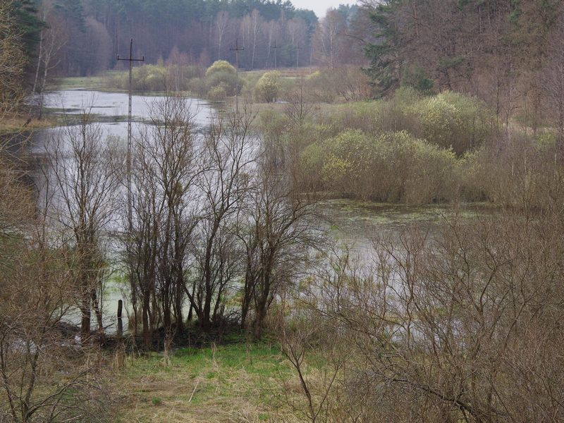 Wszystko zaczęło się ponad rok temu, kiedy na pobliskiej łące zaczęło przybywać wody. Zjawisko to wcześniej nie miało miejsca, ponieważ teren łąki połączony jest kanałem melioracyjnym z terenem pobliskiego jeziora, więc woda gruntowa dotychczas swobodnie odpływała. Wody jednak przybywało coraz więcej, co zainteresowało pracowników Parku. Okazało się, że sprawcą zjawiska jest bóbr, który niespodziewanie pojawił się na tym terenie, i jego specyficzna działalność. Zwierzę to, wykorzystując swoje zdolności, zablokowało odpływ z kanału melioracyjnego do jeziora Lubie, co spowodowało intensywne zalewanie terenu łąki o powierzchni ok 1 ha wodami gruntowymi i spływającymi z okolicznych lasów. Aby zapobiec dalszemu zalewaniu łąki i podmywaniu przyległych terenów gospodarczych, zostały przeprowadzone prace mające na celu udrożnienie fragmentu rury odpływowej na kanale melioracyjnym. Wody było jednak już na tyle dużo, że podaż wody gruntowej przekraczała możliwości odpływowe rury melioracyjnej, w wyniku czego poziom lustra wody prawie nie zmieniał się. Do tego w krótkim czasie bóbr ponownie zatamował odpływ, który w wyniku prac melioracyjnych ponownie został przywrócony. Woda więc cały czas odpływa, jednak ze zbyt małą intensywnością. W efekcie działalności bobra nastąpiła zamiana suchego ekosystemu łąkowego w przepływowy zbiornik zaporowy, czyli ekosystem ziemno-wodny. Proces tworzenia się nowego ekosystemu jest czasochłonny, mimo to jednak stwierdzono występowanie w tym miejscu nowych organizmów, charakterystycznych dla zbiorników wodnych. Najszybciej pojawiają się w takich przypadkach owady wodne oraz płazy.