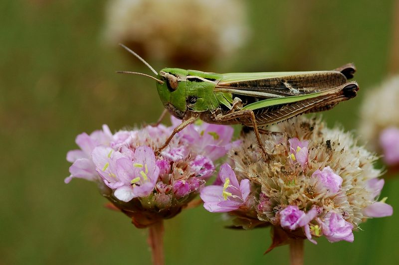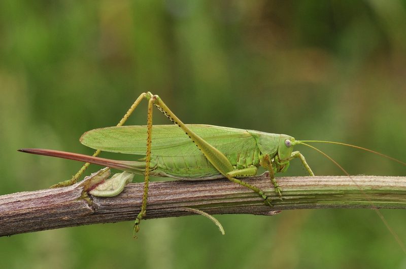 Złotawek nieparekKonik polny, świerszcz, pasikonik, szarańcza ... to nazwy z pewnością wszystkim znane, do tego jeszcze siejący postrach wśród działkowców - turkuć podjadek. Te zwyczajowe nazwy dotyczą owadów prostoskrzydłych istniejących w świecie nauki pod nazwą Orthoptera. W Polsce nie stanowią dużej grupy ponieważ należą do owadów wybitnie ciepłolubnych, a więc ich bioróżnorodność jest znacznie większa np. w krajach śródziemnomorskich. Wykazano w naszym kraju jedynie 83 gatunki na ok. 25 000 gatunków owadów żyjących w Polsce. Mimo, że niezbyt liczne pod względem liczby gatunków, to jednak są zauważalne z uwagi na to, że po osiągnięciu dojrzałości, a więc przejścia ze stadium larwalnego (nimfy) do postaci dorosłej, czyli imago, samce większości gatunków zaczynają wydawać charakterystyczne dla danego gatunku dźwięki, po których zresztą wprawne ucho może rozróżnić poszczególne gatunki, podobnie jak ma to miejsce w przypadku ptaków. Dołczan wysmukłyPrzy czym ptasi śpiew cieszy nasze ucho generalnie w okresie wiosennym (marzec - czerwiec), natomiast w najcieplejszych miesiącach roku, latem gdy ptaki milkną, akustyczne tło przyrody tworzą właśnie owady prostoskrzydłe. I tak jest do ostatnich ciepłych dni jesieni. Dźwięki powstają w bardzo rozmaity sposób, często poprzez pocieranie o siebie dwóch skrzydeł, lub pocieranie udem o skrzydło. Struktury którymi owady te wydają dźwięki nazywają się narządami strydulacyjnymi. Jeśli jest emitowany dźwięk, to oczywiście muszą być organy, które ten dźwięk odbierają, nazywają się one narządami tympanalnymi, co ciekawe u części gatunków zlokalizowane są one na odnóżach.