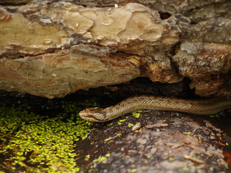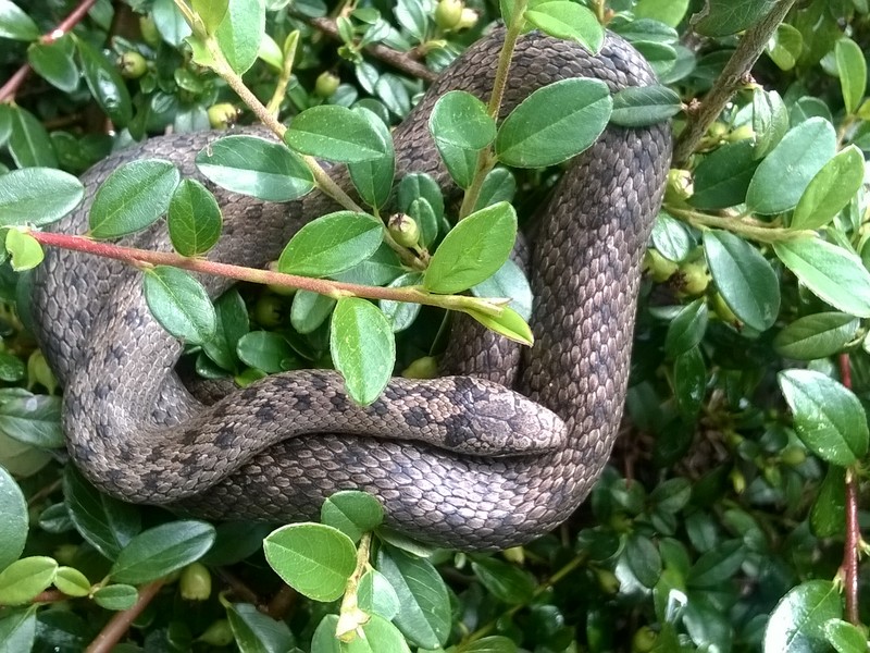 Gniewosz plamistyTaki właśnie ciekawy gatunek od wielu lat zamieszkuje w Barlinecko-Gorzowskim Parku Krajobrazowym, przez co stanowi o dodatkowym walorze przyrodniczym obszaru. Występuje w sąsiedztwie cieków wodnych, na częściowo odsłoniętych siedliskach, np.: słonecznych murawach i łąkach. Poluje tam na bezkręgowce, jaszczurki i drobne ssaki. Jego kakaowe umaszczenie wzbudza podziw, ale też niestety strach u nieco bardziej wrażliwych osób. Mimo, że jego grubość jest porównywalna z grubością palca wskazującego dorosłego człowieka, to mylony jest z o wiele grubszą żmiją zygzakowatą - która to właśnie jest jadowita. Z tego powodu, gniewosz był przez wiele lat tępiony, przez co jego populacja tak się skurczyła, że obecnie znajduje się pod ochroną. A wystarczy odrobina wiedzy, by ten około 50-centymetrowy wąż w kolorze brązowo-szarym z ciemniejszymi cętkami, stał się ciekawszym obiektem do fotografowania, niż do niszczenia. Oczywiście upolowanie takiej „okazji fotograficznej” to też nie lada wyzwanie. Jeśli już przez przypadek trafimy na takie miejsce, gdzie gniazduje gniewosz, należy pamiętać o kilku zasadach, mianowicie: to my jesteśmy gościem na jego terenie!, nie możemy go płoszyć, musimy poruszać się spokojnie podczas robienia zdjęć przyrodniczych, a po uchwyceniu gniewosza w obiektywie - czym prędzej opuszczamy strefę jego gniazdowania. W efekcie możemy podziwiać zdjęcia, na których można dostrzec także pręgę przebiegającą przez oczy gada - swoistą „maskę Zorro”.