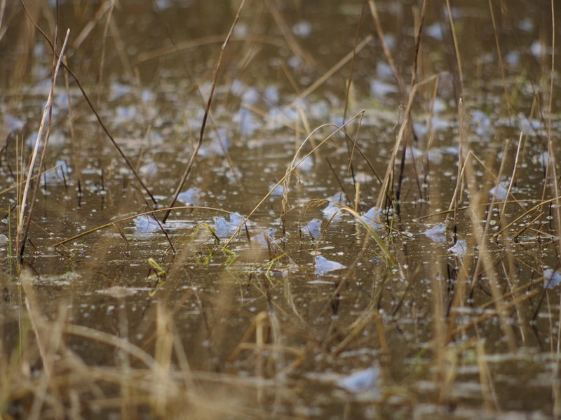 Blisko 400 niebieskawo wybarwionych samców żaby moczarowej - Rana arvalis, pięknymi, „bulgoczącymi” dźwiękami dawało znać na całą okolicę, o przystąpieniu do okresu godowego.