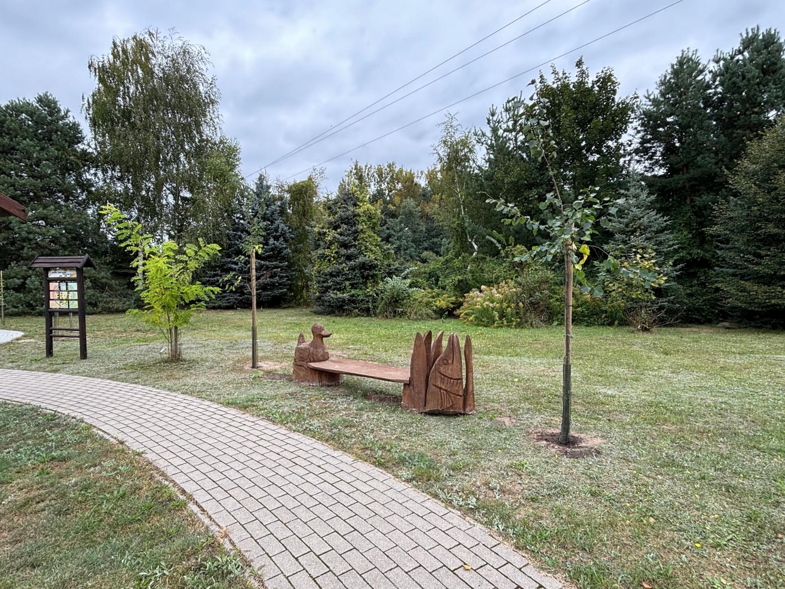 - ławostoły piknikowe – 4 szt. oraz 2 szt. ławostołów zadaszonych umożliwiających prowadzenie zajęć przyrodniczych w terenie.
