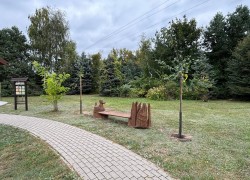 Zakończyły się prace związane z realizacją projektu pn. „Ogród zmysłów przy Ośrodku Edukacji Przyrodniczej w Pszczewie”. W ramach zadania powstała utwardzona ścieżka edukacyjna o powierzchni ok. 100 m2, wzdłuż której zamontowano edukacyjne konstrukcje przestrzenne: