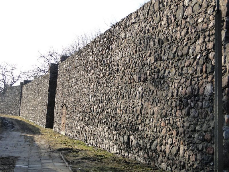 - Fragmenty kamiennych murów obronnych z XIV wieku – pozostało 480 metrów z początkowych 1700 metrów, z najciekawszym odcinkiem u zbiegu ulic Chmielnej i Górnej;
