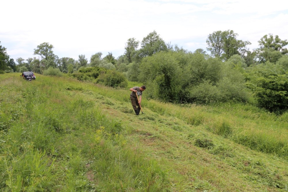 Wykoszenie traw zostało wykonane specjalistyczną kosiarką do prac z wysoką trawą i na nierównym terenie, której to zakup został współfinansowany ze środków Wojewódzkiego Funduszu Ochrony Środowiska i Gospodarki Wodnej w Zielonej Górze.